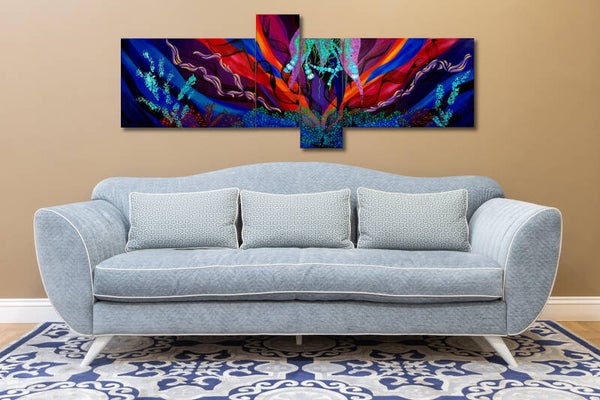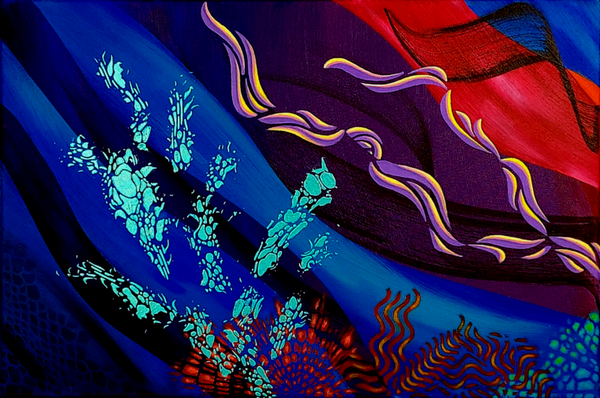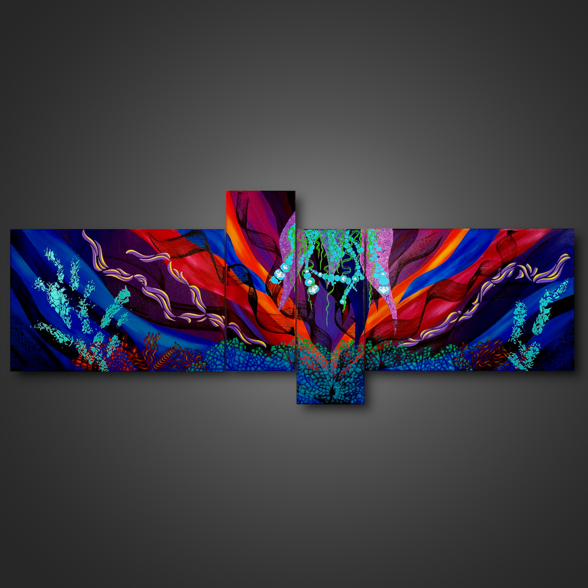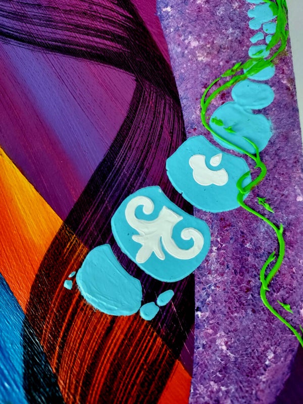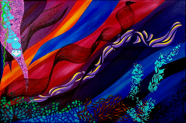 "Immersion" est une plongée dans l’inconscient, un voyage intérieur où les formes se dissolvent pour laisser place au ressenti. Les couches de couleurs se superposent, se fondent et créent un mouvement organique, comme une mer intérieure en perpétuelle transformation.